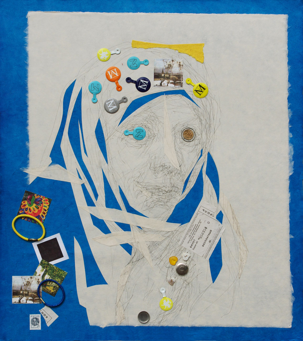 ink, collage on Japanese paper